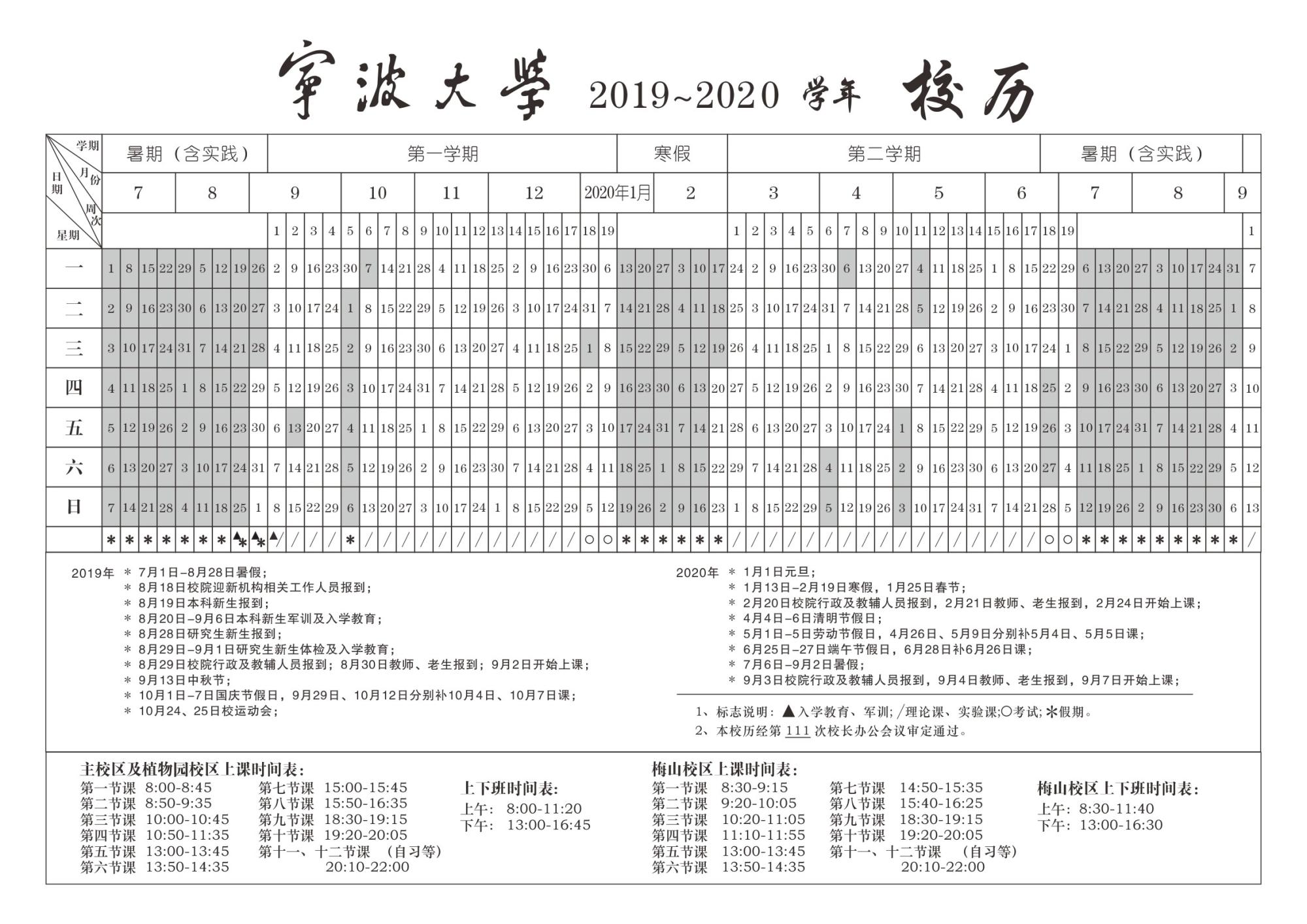 2019-2020 学年校历